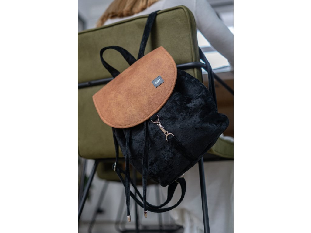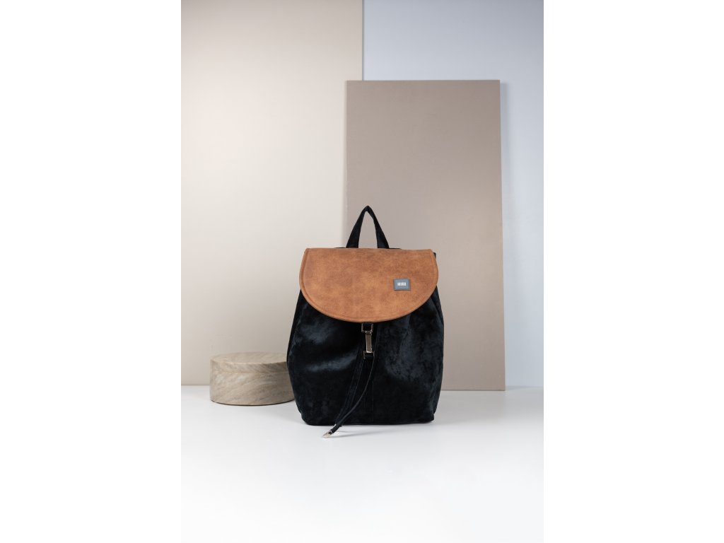 Batoh MANA MANA Černá samet/Hnědá