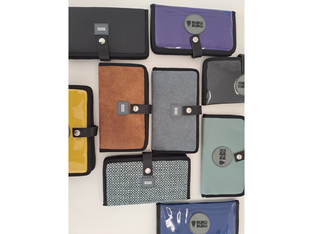 Velká peněženka ručně šitá s vnitřním uspořádáním na platební karty, mince, bankovky a fotky.