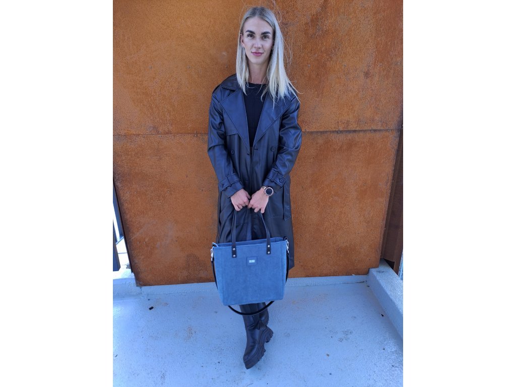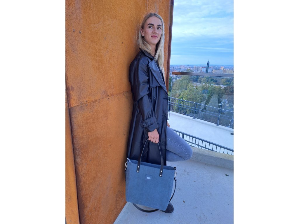 Minimalistická módní taška vyrobená z hrubé tkaniny v barvě zelenomodré a eko kůže černé. Uvnitř je silná bavlněná podšívka , a tři kapsy - dvě otevřené a jedna se uzavírá pomocí zipového uzávěru. Taška má pevný popruh z krásné eko kůže. Je přidělána na čtyřech nýtech (uších). Je možné ji nosit volně přes rameno nebo si nastavitelným popruhem ze stejného materiálu upravit tašku pro nošení diagonálně (crossbody). Je měkká, pojme neuvěřitelné množství věcí a skvělá pro každodenní nošení do práce nebo školy. Taška pojme objem do 3kg (pro každodenní nošení), čas od času se může také přetížit na 5-6kilovou zátěž.